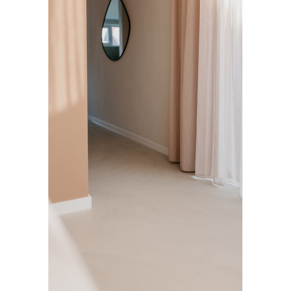 Een van de andere voordelen van een lavasteen gietvloer is de natuurlijke uitstraling. Het materiaal heeft een subtiele structuur en kan in verschillende kleuren en varianten, “calm” en “grit”, worden aangebracht, wat zorgt voor een unieke look in iedere ruimte.