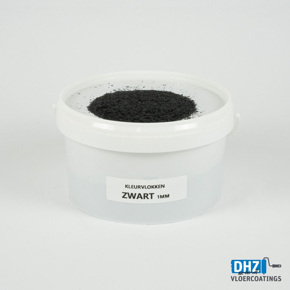 Kleurvlokken zwart 3 mm. Verpakking: 500 gram.